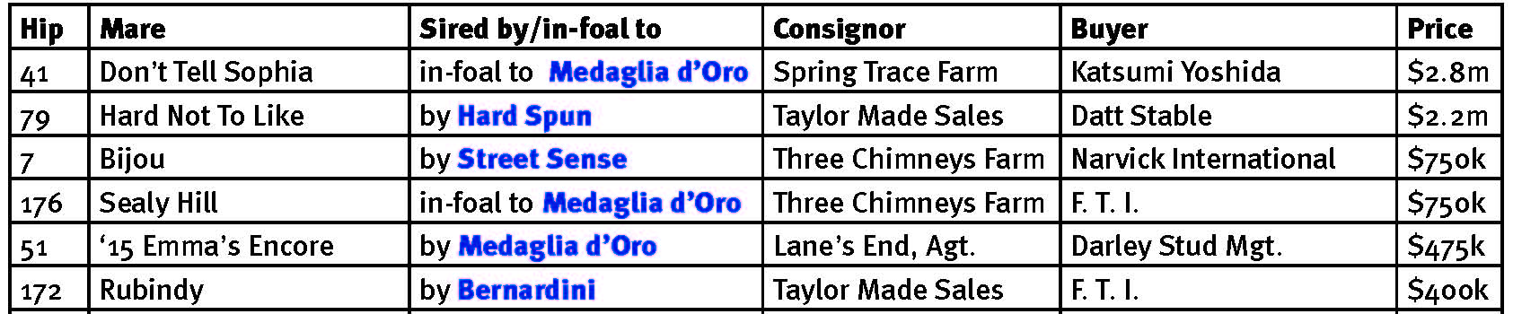 The action continued on November 1st at the Keeneland November Mixed Sale as top prices again were realized for progeny of, and mares in-foal to Darley sires: