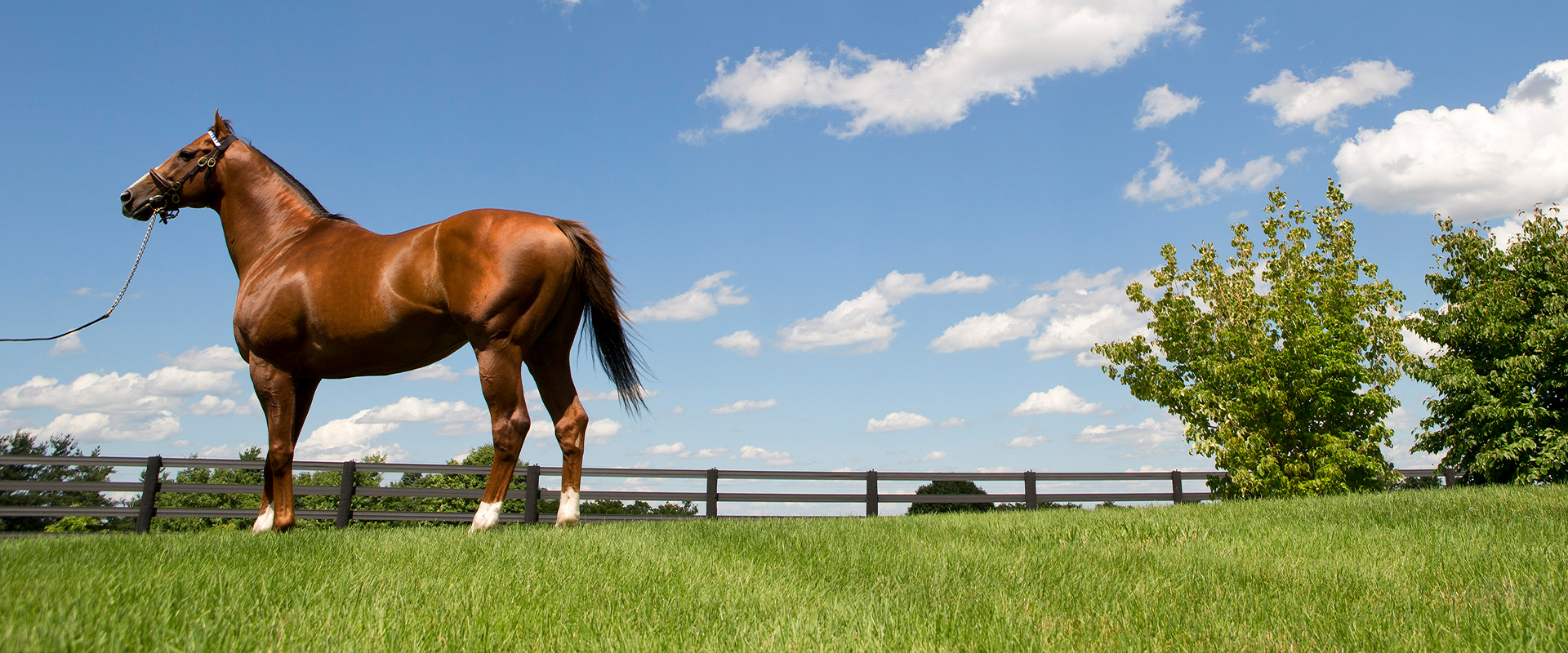 By UNBRIDLED’S SONG (1993) Breeders’ Cup Juvenile (G1), Florida Derby (G1), etc. Sire of 1,700 foals aged three and up, including MIDSHIPMAN, ARROGATE, CROSS TRAFFIC, FIRST DEFENCE, GRAYDAR, LIAM’S MAP, OCTAVE, POLITICAL FORCE, SONGANDAPRAYER, WILL TAKE CHARGE, etc.